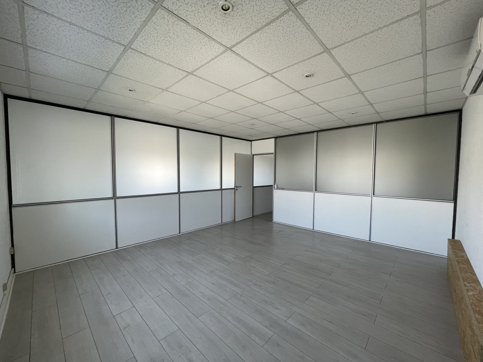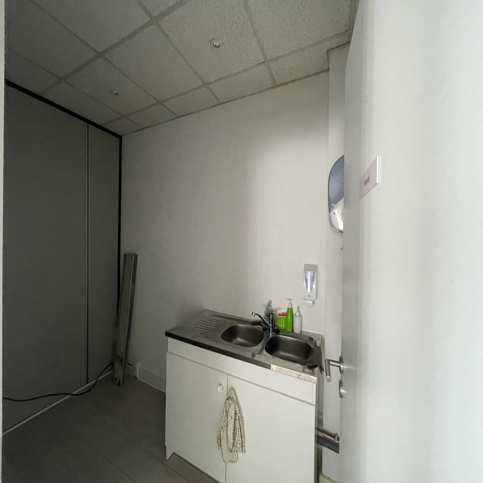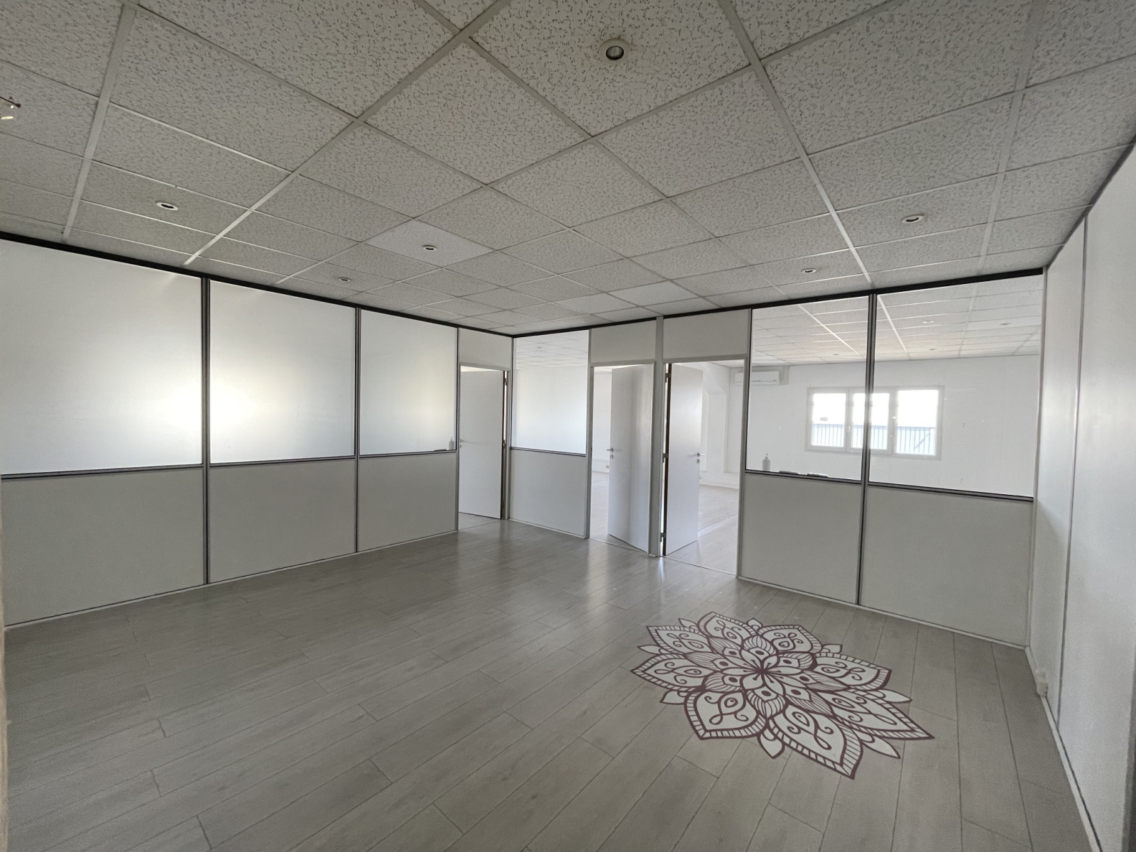 Ces bureaux possèdent un espace accueil, une grande salle de travail ouvert, un bureau individuel, une cuisinette et un bloc sanitaire avec lave-mains.