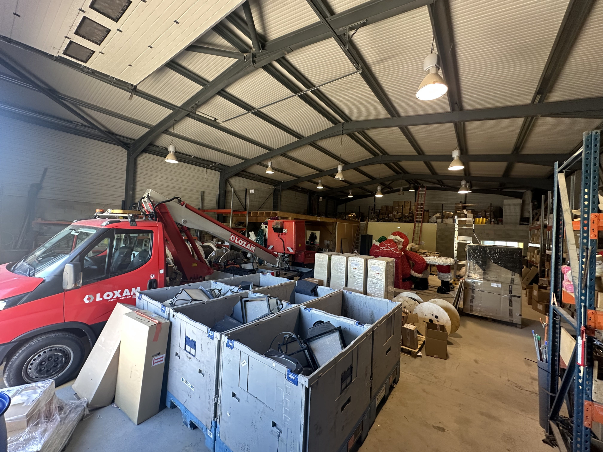 Il totalise une surface de 425 mètres carrés de plain-pied. Il dispose d'un grand espace d'entreposage accessible par une porte toute hauteur (6 mètres), une mezzanine, un espace bureaux avec salle de réunion, vestiaires et bloc sanitaire.